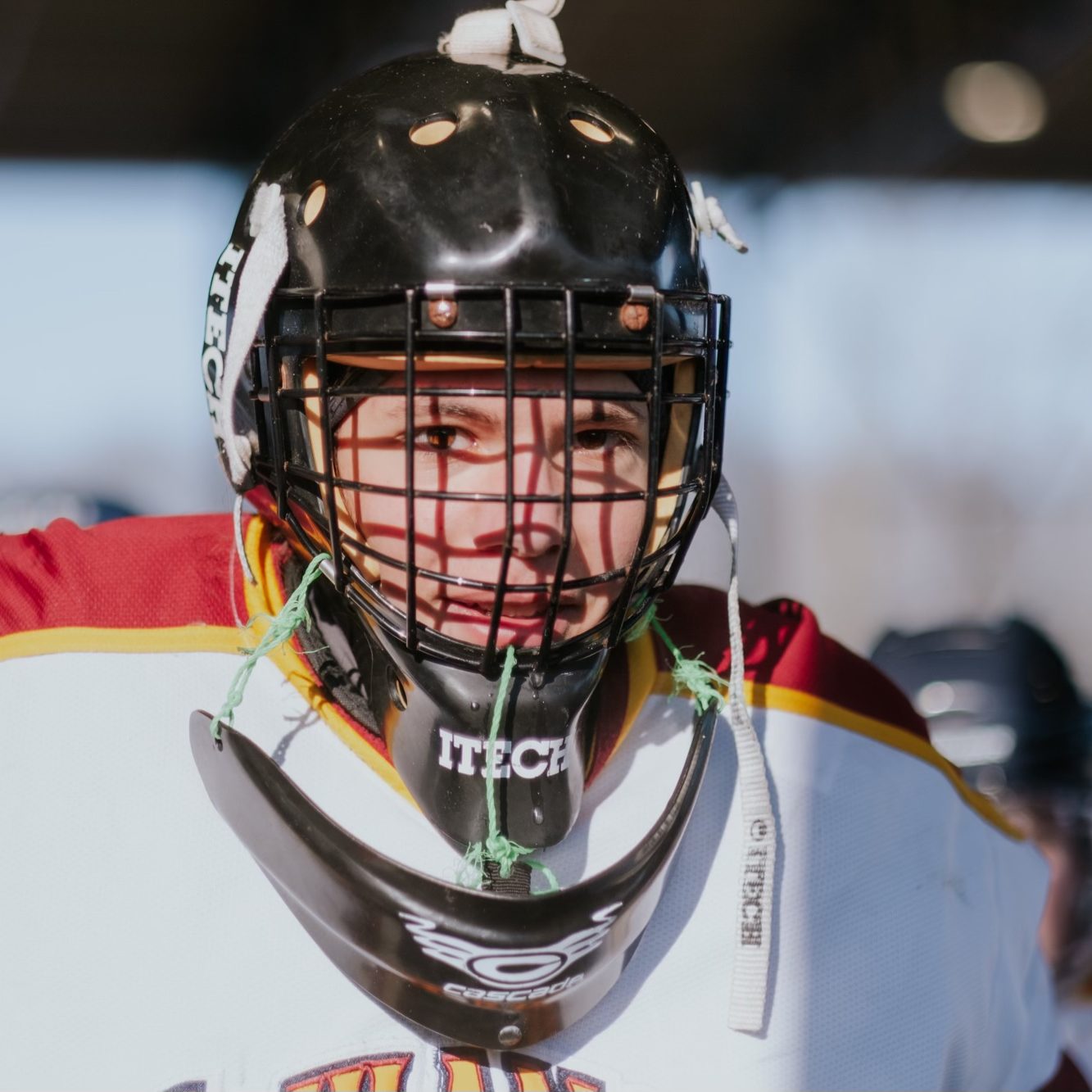 • Porter un casque protecteur avec visière, un protège-cou et des gants de hockey;